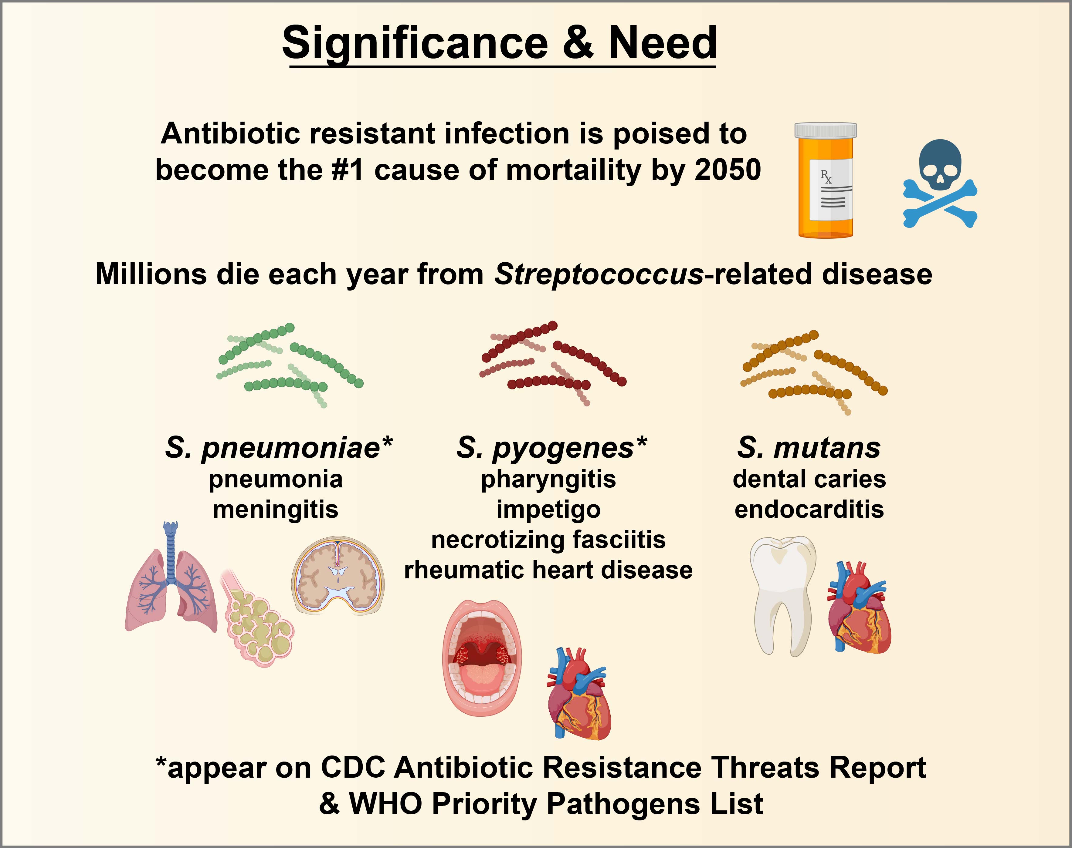 The bacterial genus Streptococcus contains some of the most important pathogens and commensals of the human microbiome, with multiple species causing significant human morbidity and mortality. This project is revealing how three important Streptococcus pathogens utilize and modify host fatty acids and discover how this process integrates with quorum-sensing and virulence regulation. By defining the biochemical and signaling pathways connecting fatty acid utilization to pathogenic behavior, this work will uncover new molecular targets for prebiotic strategies that disarm pathogens.